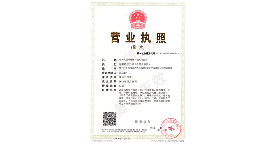 | 哈爾濱巨耀網(wǎng)絡科技有限公司·版權所有 | 地址:哈爾濱市南崗區(qū)西大直街118號哈特大廈17層 |